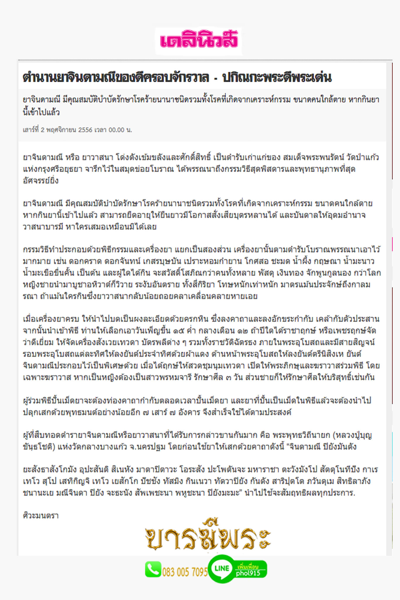 (คัดลอกมาจากนิตยสารลานโพธิ์ 966 เดือนมกราคม 2550 โดย... แฉ่ง บางกระเบา)